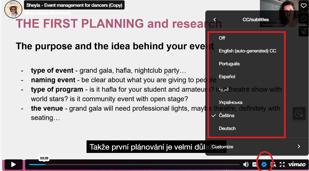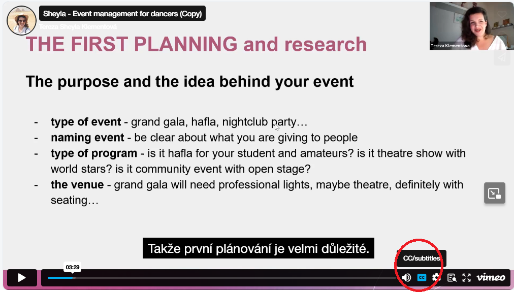 - Before you start watching turn on the subtitiles by clicking the CC button.